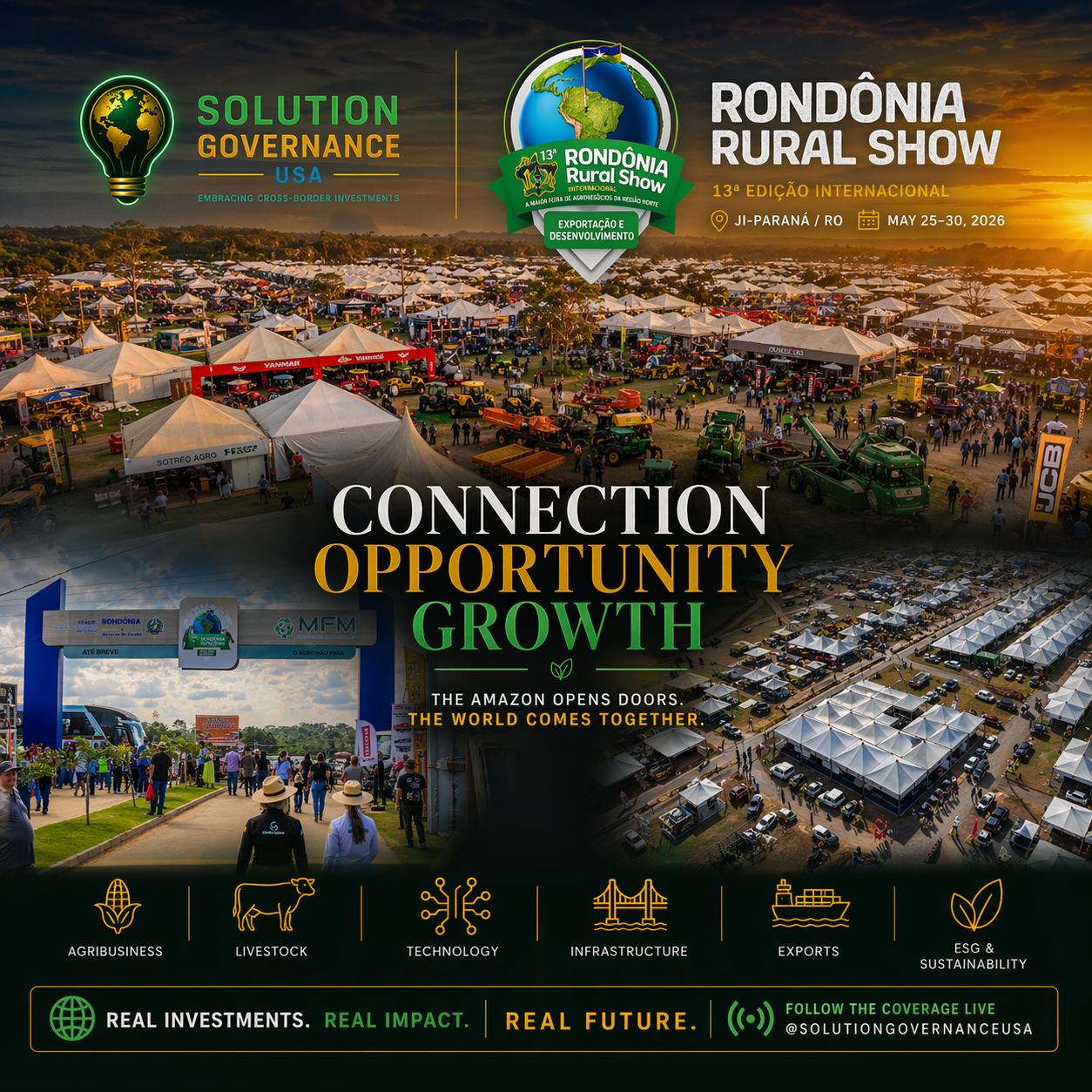 Rondônia Rural Show: From a Regional Fair to a Global Agribusiness Benchmark By Jonatas — Solution Governance USA Look at Ji-Paraná on a map and you see a mid-sized city in the interior of Rondônia, 373 kilometers from Porto Velho, sliced through by BR-364. Look at the Vandeci Rack Technology Center during the last days of May and you see something else entirely: John Deere tractors lined up in rows, exhibitors from twelve Brazilian states, foreign investors moving between soybean, beef, and coffee stands — and billions of reais changing hands in under a week. That transformation did not happen overnight. It was built edition by edition, and the 13th Rondônia Rural Show Internacional, set for May 25–30, 2026, arrives carrying the momentum of one of the most consistent growth stories in Brazilian agribusiness. The 12th edition, held in 2025, closed with R$ 5.1 billion in total business volume — breaking every previous record and cementing the event as the largest agribusiness fair in Brazil's Northern Region. For those who have followed Rondônia's agricultural evolution over the years, that number carries symbolic weight beyond the transaction register: it validates a long bet that it was possible to transform an economy historically driven by extraction and informal land use into one of the most dynamic agricultural frontiers in the country. The recent trajectory is hard to argue with. The 11th edition in 2024 moved R$ 4.4 billion in deals. By 2025, that figure had climbed to R$ 5.1 billion, surpassing the organizers' own expectations. The growth is not random — it tracks the real expansion of production across the state, particularly in soybeans, corn, beef cattle, and increasingly in coffee and fish farming. In 2024 alone, Rondônia set a new export record for beef, totaling US$ 1.16 billion, while coffee exports surged 645% year-over-year. The fair has become a mirror of that advancement — and simultaneously, one of its engines. The 13th edition carries the theme "Export and Development" and was launched with an explicit goal: to surpass the 446,238 visitors and R$ 5.1 billion from the previous year. The thematic choice is deliberate. It signals a shift in posture from the Rondônia agribusiness sector — producing is no longer enough on its own. The priority now is plugging that production into global value chains, with traceability, governance, and direct access to international buyers. That is the precise inflection point where events like the Rural Show stop being trade fairs and become platforms for geoeconomic positioning. The 2026 edition aims to attract representatives from multiple countries, expand the number of international business rounds, and present new commercial opportunities for rural producers. The fair has been acting as a platform for financing and strategic partnerships, connecting producers with financial institutions and stimulating investment in technology and services. For foreign investors, this matters: Rondônia is no longer a frontier story built on promise alone. It is a functioning, documented, export-oriented agricultural economy — and it is still priced like a frontier. For us at Solution Governance USA, operating at the interface between U.S. capital and Brazilian opportunity, the reading here is straightforward. The 2026 theme prioritizes connections with external markets and the development of strategic productive chains — which creates a specific, time-sensitive entry window for investors who understand what early positioning means in a market like this. The foreign capital that arrives in Rondônia before the rest finds consolidatable land structures, expanding logistics infrastructure, a real productive base, and — contrary to what most assume from the outside — a regulatory environment that, when properly structured, delivers legal certainty and tax efficiency. What is missing in most cases is not the project. It is the bridge. It is someone who can make the crossing with competence. The 2026 edition is expected to bring together producers, companies, startups, financial institutions, foreign delegations, and international buyers around an agenda of exhibitions, lectures, technology demonstrations, business rounds, and sustainable solutions showcases. That ecosystem did not exist at a Northern Region agribusiness fair a decade ago. It exists now because Rondônia built it, deal by deal, edition by edition. We will be in Ji-Paraná in May — covering the event live, mapping opportunities, and translating what the 13th edition has to offer into the language that our international clients and partners need to hear. The world is looking at Rondônia. The question is whether you will arrive early enough to understand what that means. Jonatas — Founder of Solution Governance USA | Specialist in Corporate Governance, Compliance, and Brazil–U.S. Business Structuring | CRA/RO No. 6581